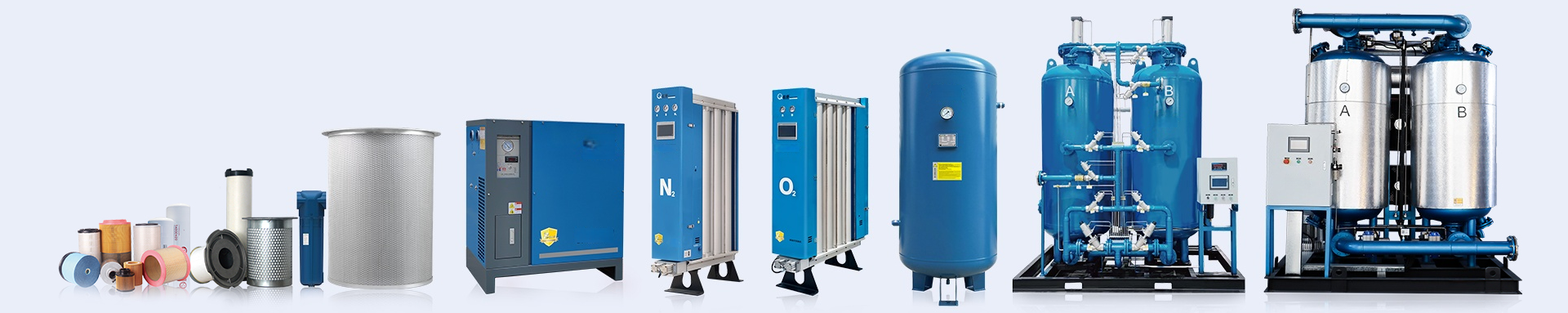 4、根据氧化铝与分子筛的吸附特点,本公司自行研制的分层技术,使空气首先经过氧化铝进行初步干燥,降低空气中的含水量后在经分子筛作深度干燥,达到低露点的空气品质。
